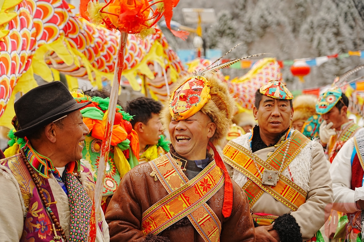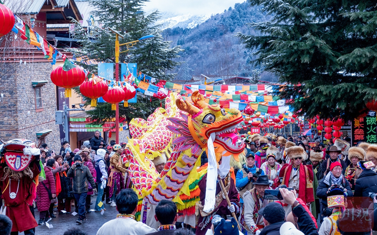 2025年2月6日,農(nóng)歷正月初九,雅安寶興磽磧藏寨迎來(lái)藏歷木蛇年傳統(tǒng)民俗文化活動(dòng)“上九節(jié)”。這一天,夾金山藏族群眾穿著節(jié)日的盛裝,表演“磽磧多聲部民歌”“磽磧上九節(jié)”“磽磧鍋莊”等國(guó)家級(jí)、省級(jí)非物質(zhì)文化遺產(chǎn)節(jié)目,把節(jié)日的盛況推向高潮。