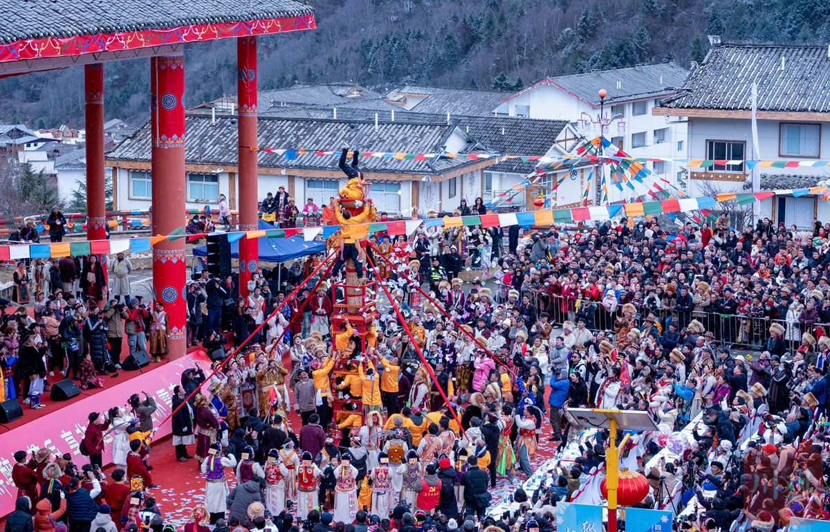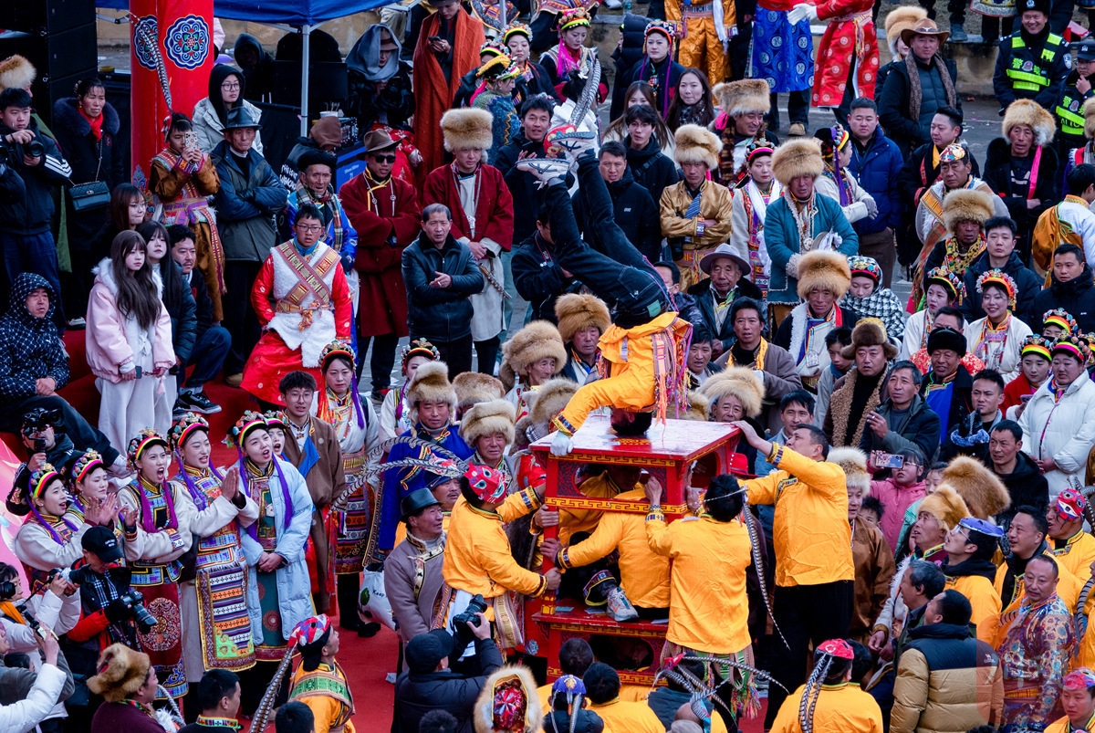 2025年2月6日,農(nóng)歷正月初九,雅安寶興磽磧藏寨迎來(lái)藏歷木蛇年傳統(tǒng)民俗文化活動(dòng)“上九節(jié)”。C視覺(jué) 李龍年 攝