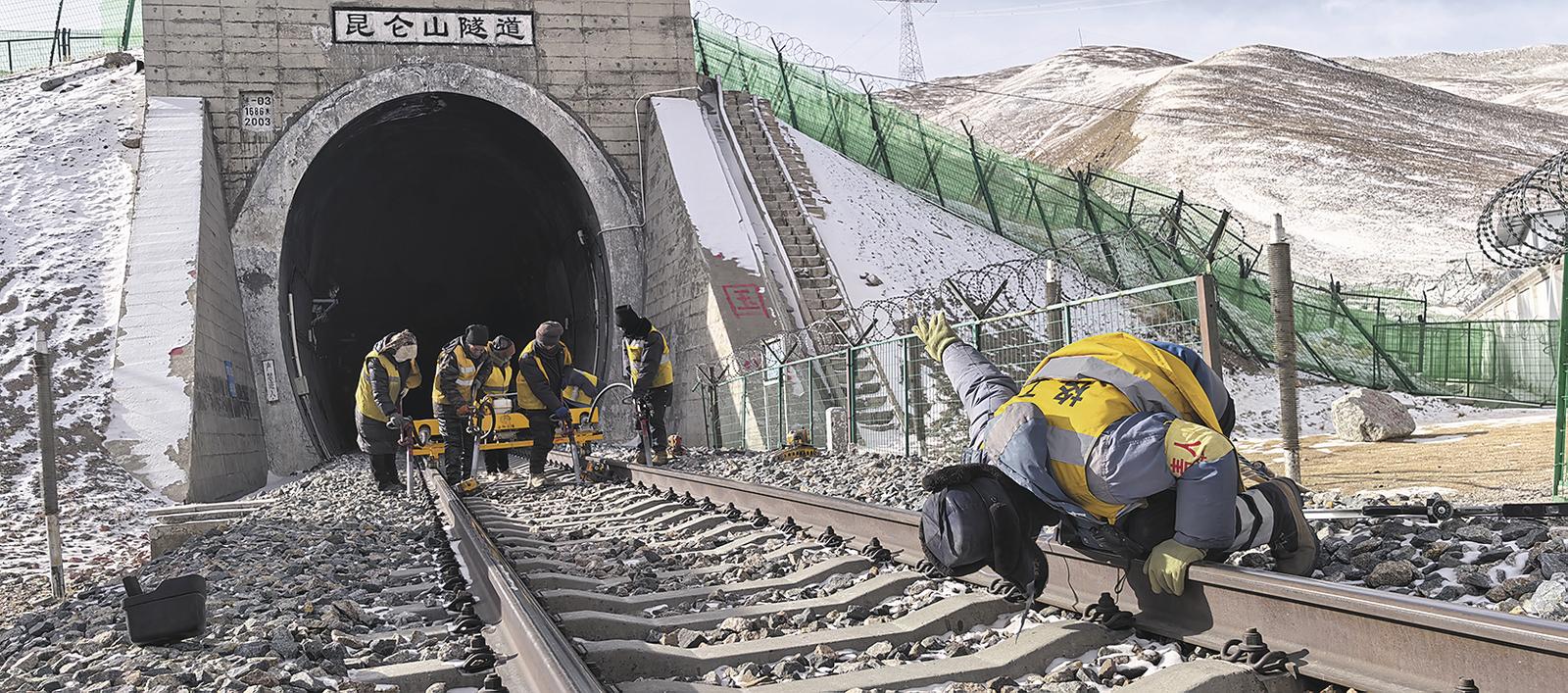 2月7日,記者驅(qū)車(chē)從青海省海西蒙古族藏族自治州格爾木市一路南行,輾轉(zhuǎn)跋涉三個(gè)多小時(shí),到達(dá)中國(guó)鐵路青藏集團(tuán)有限公司格爾木工務(wù)段望昆線路車(chē)間,下車(chē)后四下環(huán)顧,昆侖山脈白雪覆蓋,寒風(fēng)像刀片一樣刮過(guò)臉頰,迎風(fēng)行走著實(shí)難受。
