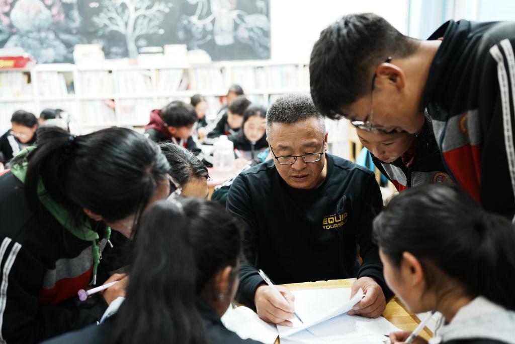 2024年3月,姜偉在給學(xué)生輔導(dǎo)數(shù)學(xué)題。(受訪者供圖)