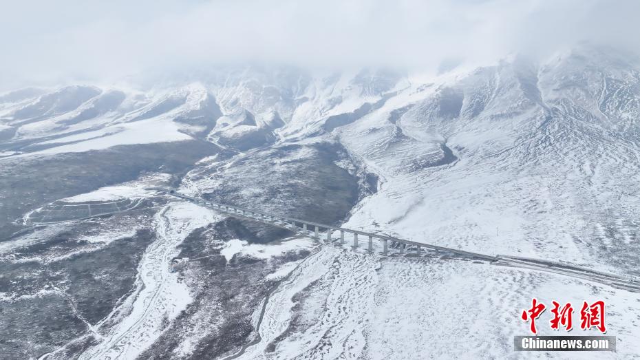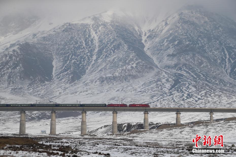 2月22日,鐵路列車(chē)從祁連山下行駛。一場(chǎng)春雪過(guò)后,青海省海北藏族自治州門(mén)源縣境內(nèi),連綿不絕的祁連山脈被白雪覆蓋,大地銀裝素裹,靜謐純凈,盡顯壯美山川。中新社記者 馬銘言 攝