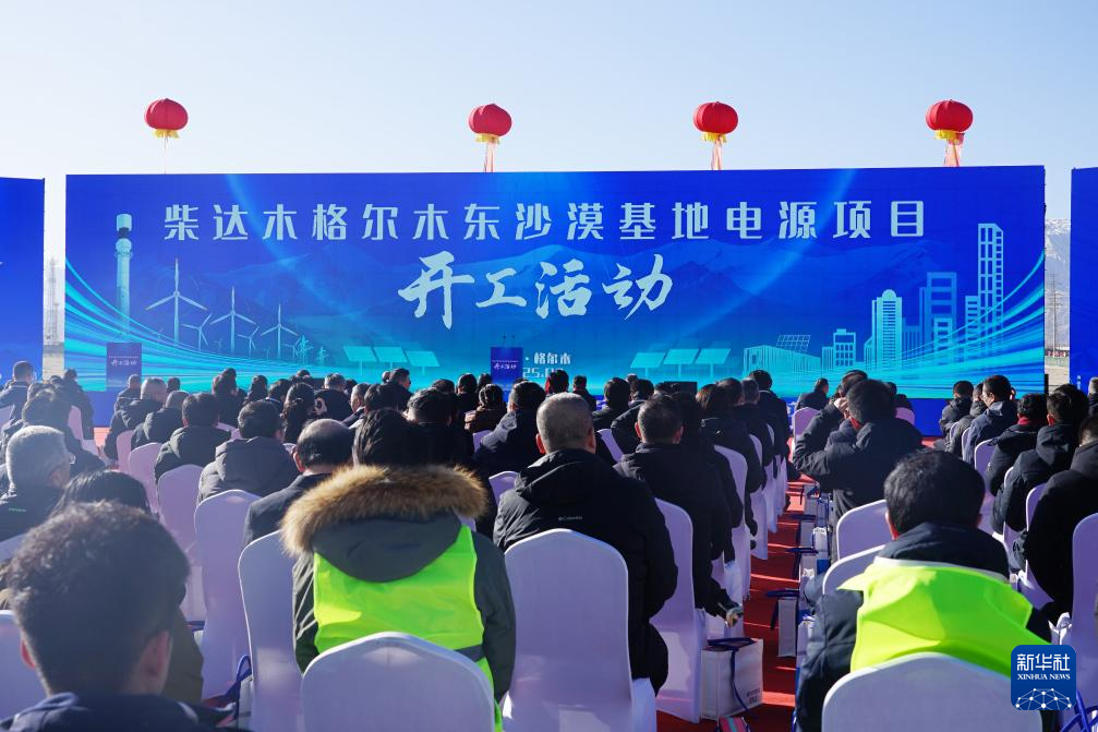 這是2月26日拍攝的柴達木格爾木東沙漠基地電源項目開工活動現(xiàn)場。新華社記者 陳杰 攝