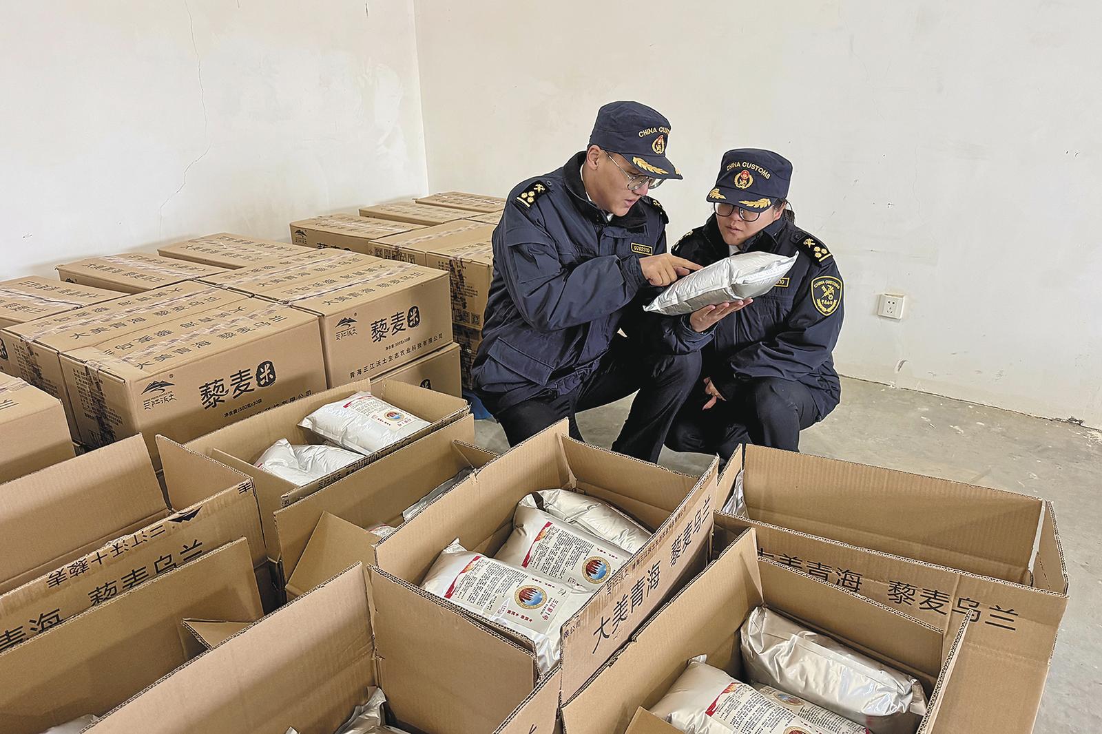 西寧海關在青海三江沃土生態(tài)農業(yè)科技有限公司對出口藜麥種子開展現場查驗。西寧海關供圖