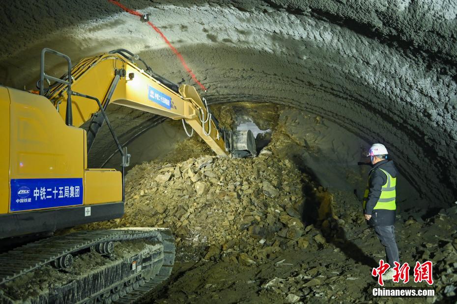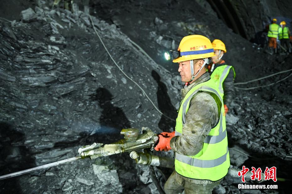 3月17日,四川若爾蓋,隧道內(nèi)中鐵二十五局建設(shè)者正在忙碌。中新社記者 劉忠俊 攝