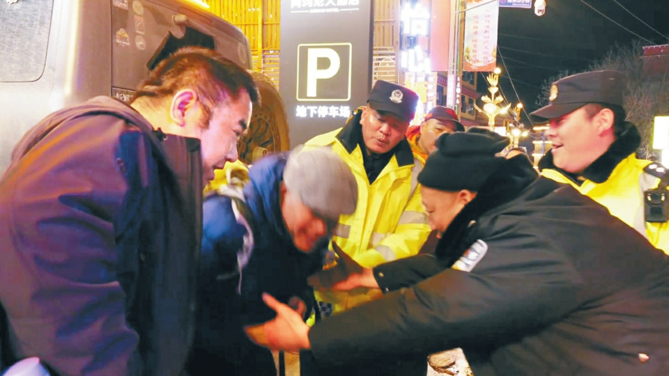 這時,民警穿的警服也已經(jīng)被凍硬了,有年輕民警問扎西澤仁會不會造成失溫,他回答道:“我們多動動就不會了?!?/p>