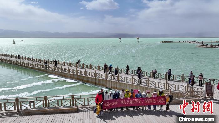 3月26日,游客在茶卡鹽湖景區(qū)合影。中新社記者 馬銘言 攝