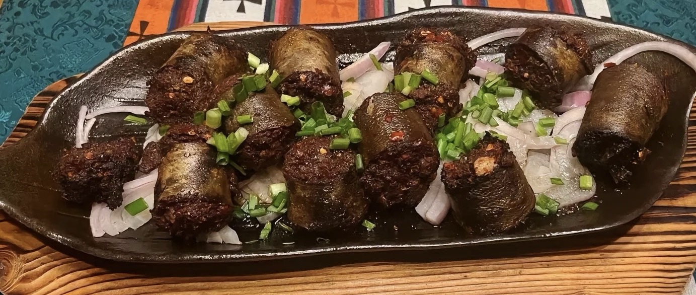 “江邊八大碗”,起源于香格里拉市金江鎮(zhèn)、上江鄉(xiāng)等地,是紅白喜事待客最高規(guī)格菜肴,也是當?shù)貧⒇i飯、年夜飯的標準,它的升級版據(jù)說有八碗八碟,加入涼菜、炒菜和油炸菜品。紅燒肘子、酥肉、扣肉、粉蒸肉、江邊辣等“江邊八大碗”的代表菜以燉菜和蒸菜為主,用料講究,極其考驗廚師技藝。