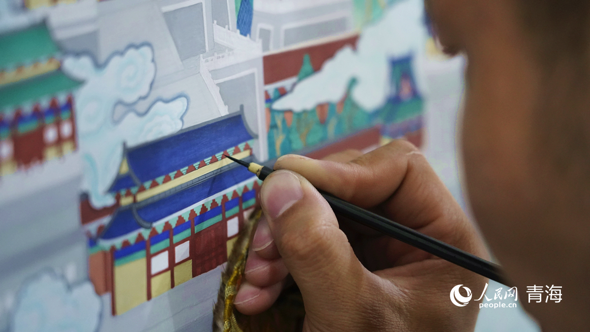 或是屏氣凝神運(yùn)筆自如,或是聚焦畫作靜心思考,安靜的畫室內(nèi),少有嘈雜,偶有畫師們交流技藝的聲音,時(shí)光從畫師們的畫筆下悄悄溜走。