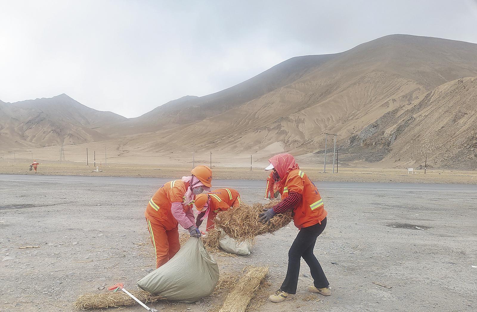 五月的昆侖山風(fēng)卷著沙粒掠過(guò)國(guó)道109線,王興香的垃圾鉗剛觸到地面的礦泉水瓶,指節(jié)上的凍瘡便隱隱作痛。她直起腰捶了捶后背,橙色工作服在陽(yáng)光下泛著鹽霜 ……七時(shí)的晨光里,兩臺(tái)滿載工具的五菱宏光準(zhǔn)時(shí)從格爾木市區(qū)駛出,14個(gè)這樣的身影即將在接下來(lái)的12小時(shí)里,重復(fù)彎腰起身的動(dòng)作上千次,用指尖的老繭丈量著從格爾木到昆侖山口的190公里天路——這是109國(guó)道環(huán)境衛(wèi)生整治小組開(kāi)始一天工作的日常。