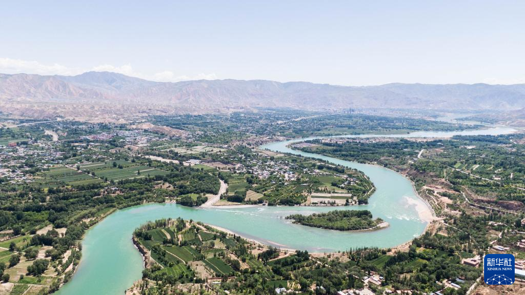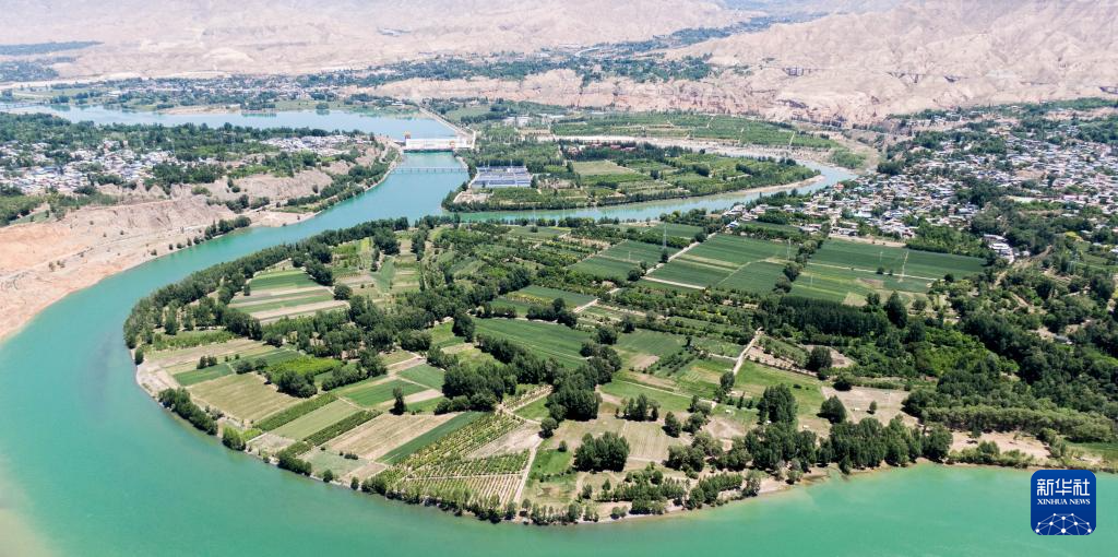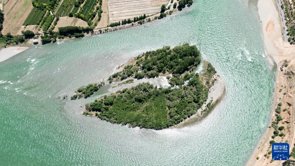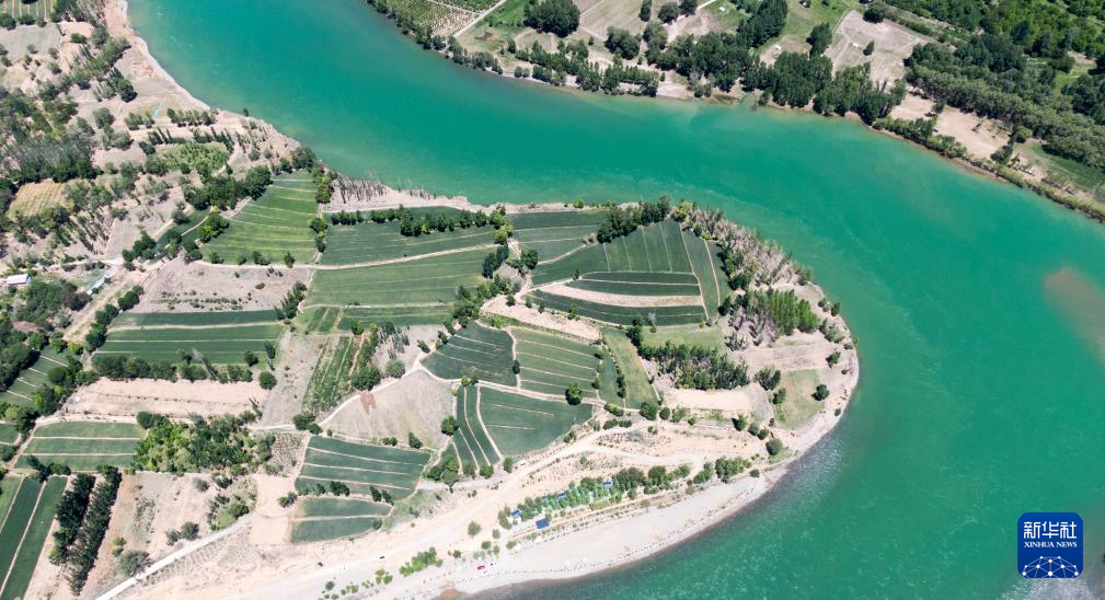 這是6月11日拍攝的尖扎縣境內(nèi)的黃河風(fēng)光(無人機(jī)照片)。新華社記者 耿輝凰 攝