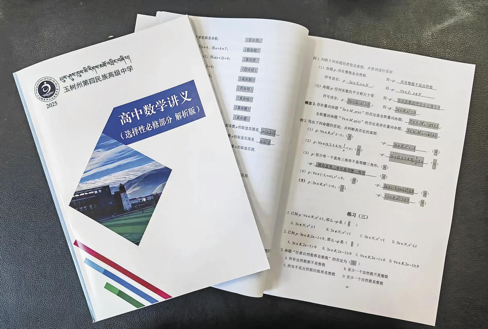6月16日,在青海省玉樹(shù)藏族自治州第四民族高級(jí)中學(xué)高二7班的教室內(nèi),孩子們每個(gè)人手里拿著一本《高中數(shù)學(xué)講義(必修部分)解析版》認(rèn)真翻看。