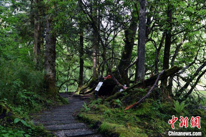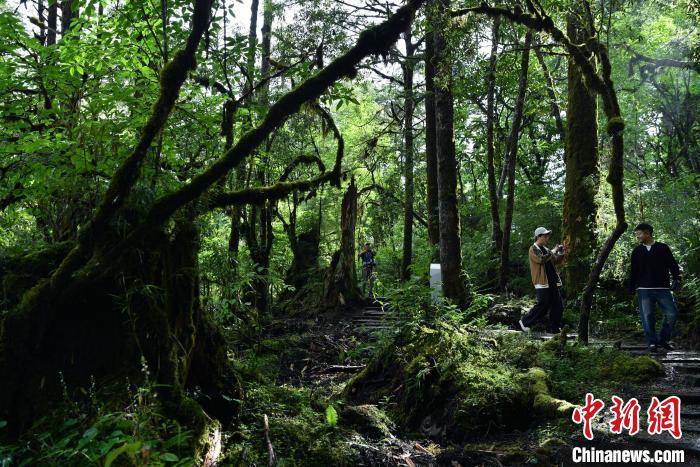 6月18日,記者走進(jìn)位于四川省甘孜藏族自治州的海螺溝景區(qū)草海子探訪。草海子是冰川雨林步游長(zhǎng)廊的入口,處于山地暖溫帶針闊葉混交林帶,是一處末次冰期古冰磧湖,湖岸是一片很大的原始森林,生長(zhǎng)著各種珍稀植物,幽靜神秘。叢林因季相變化而五彩繽紛,又被稱(chēng)為“五花林”。