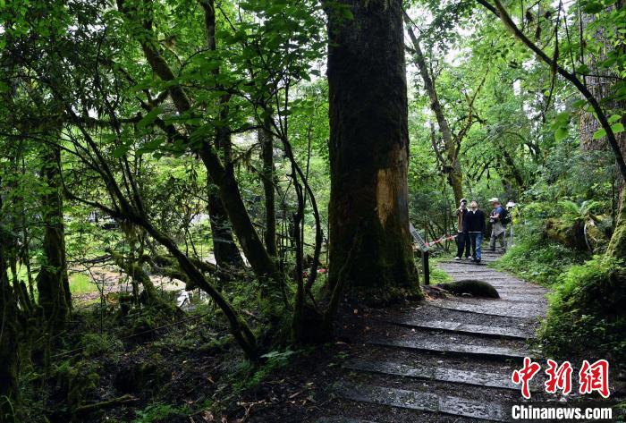 圖為游客在叢林小道上游覽。中新社記者 王磊 攝