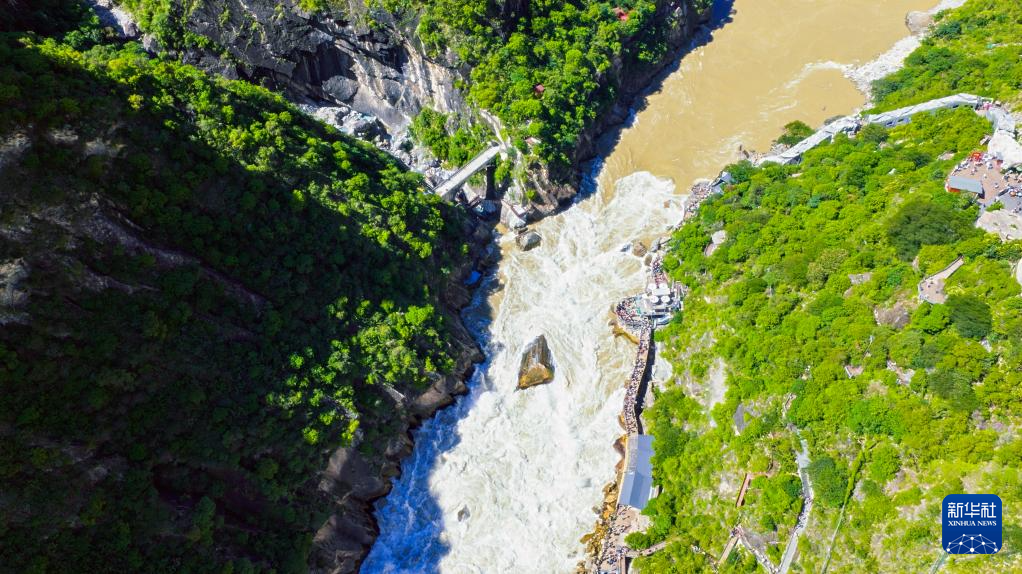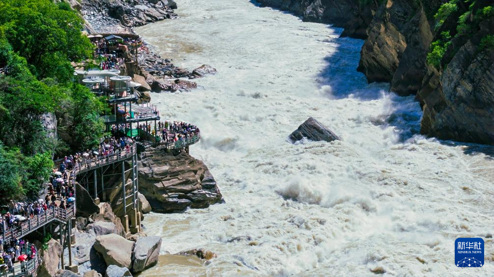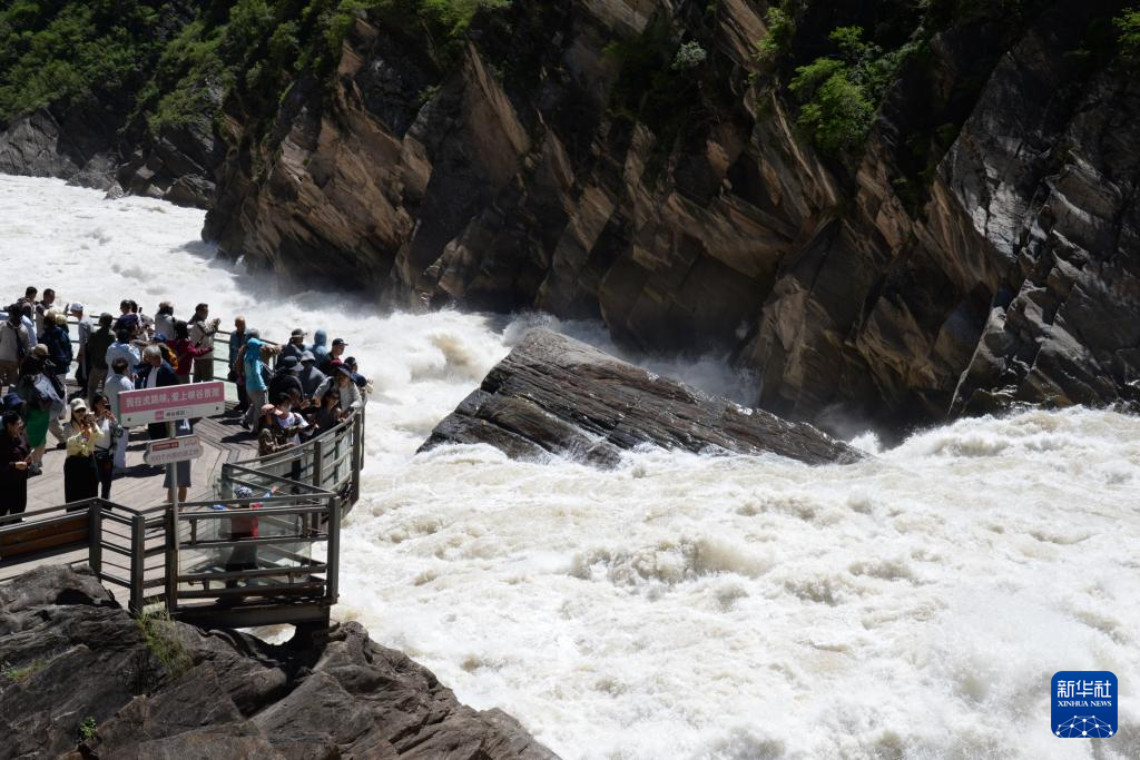 6月26日,游客在虎跳峽景區(qū)游玩。新華社記者 浦超 攝