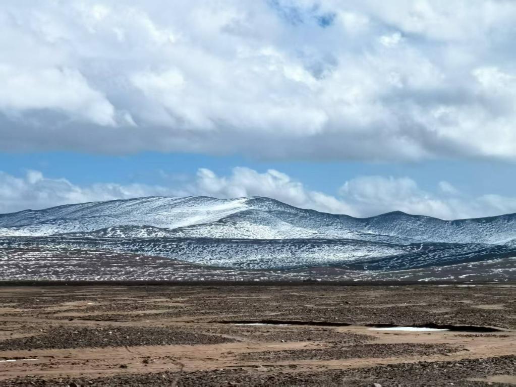 陽光像被打碎的寶石,毫無保留地傾灑。漸行漸遠的昆侖山脈若隱若現(xiàn),如同神話里沉睡的巨人,用皚皚白雪編織的披風(fēng)覆蓋著身軀。