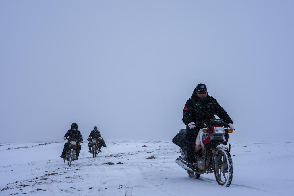 巡山隊(duì)員在可可西里卓乃湖附近巡護(hù)。新華社記者 杜笑微 攝