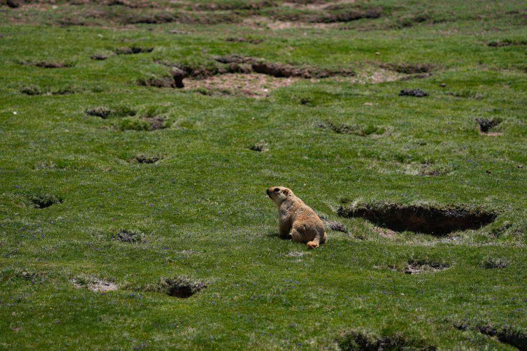 順著地平線看去,一只喜馬拉雅旱獺從洞穴中冒出頭,嗅嗅周邊的氣味,確認(rèn)安全后,探出身子在洞穴周圍尋覓充饑的干草——只是它不知道,如果搬運(yùn)不及時,一些儲存在洞口的干草,將被遷徙而至的藏羚羊順口吃完。
