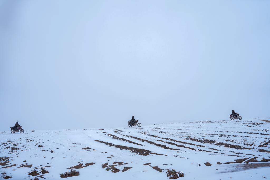 巡山隊(duì)員在可可西里卓乃湖附近巡護(hù)。新華社記者 杜笑微 攝