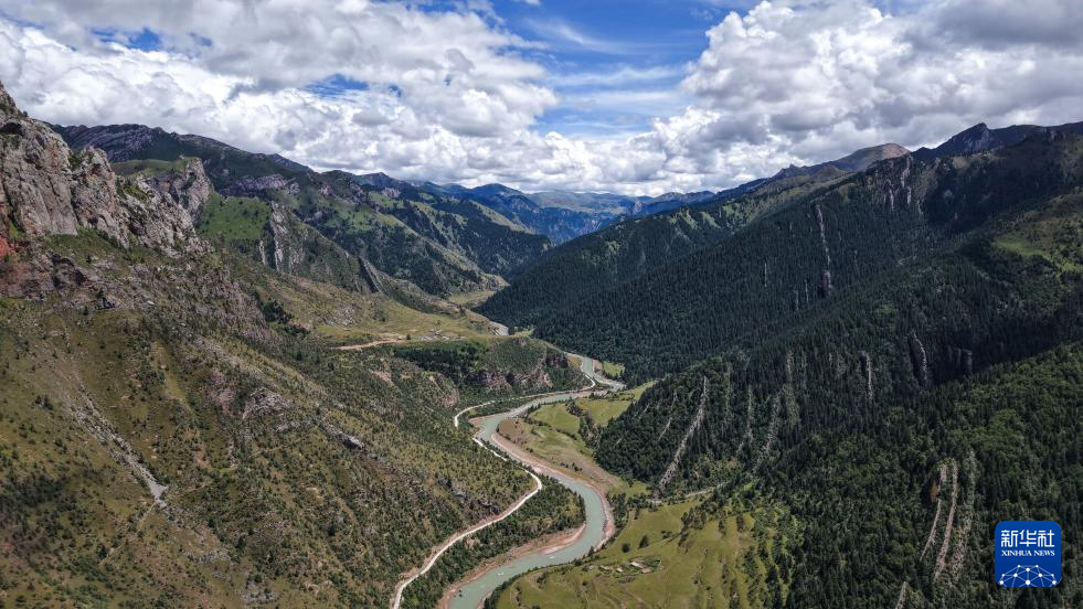 這是8月21日在青海省玉樹藏族自治州囊謙縣拍攝的江西林場(無人機照片)。新華社記者 齊芷玥 攝