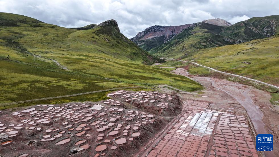 這是8月22日在青海省玉樹藏族自治州囊謙縣白扎鄉(xiāng)拍攝的白扎鹽場(無人機照片)。該鹽場已有數(shù)百年歷史,至今仍采用古老的曬鹽、制鹽工藝。新華社記者 齊芷玥 攝