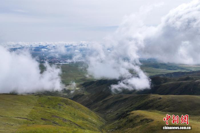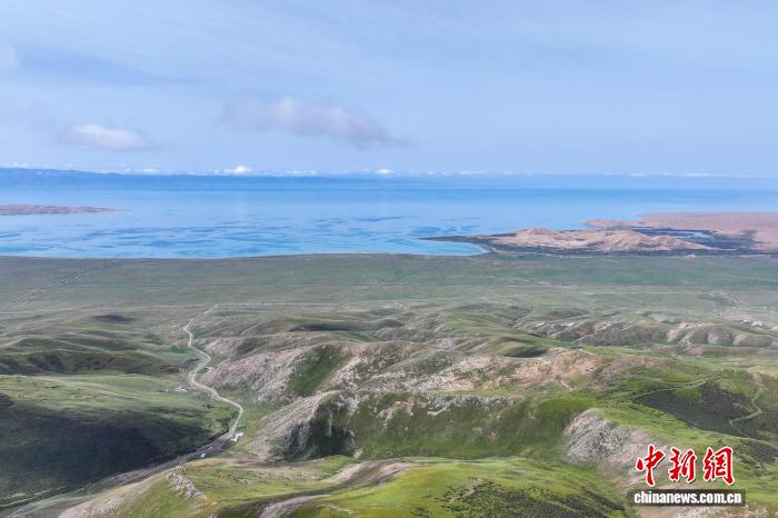 9月2日,航拍位于青海湖北岸的同寶山。同寶山地處青海省海北藏族自治州海晏縣境內,素有青海湖“云端觀景臺”之稱。中新社記者 薛蒂 攝