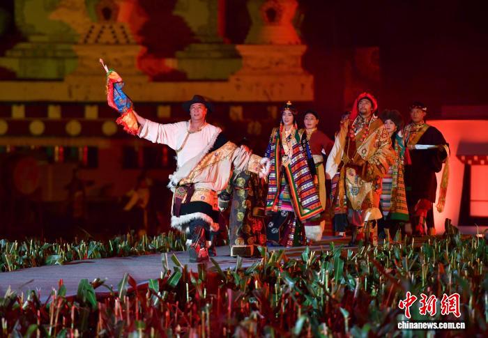 整場(chǎng)田園“瘋”裝秀共分為四個(gè)篇章。燈光秀一結(jié)束,第一篇章“夢(mèng)中的香巴拉”情景劇緩緩啟幕。在悠揚(yáng)的藏族山歌中,村民們身穿傳統(tǒng)服飾,演繹著鄉(xiāng)城人民日常生活的幸福圖景:田間的辛勤勞作、豐收時(shí)洋溢的笑容……每一個(gè)場(chǎng)景都浸潤(rùn)著濃濃的鄉(xiāng)情,仿佛將觀眾帶入真實(shí)而溫暖的田園生活。