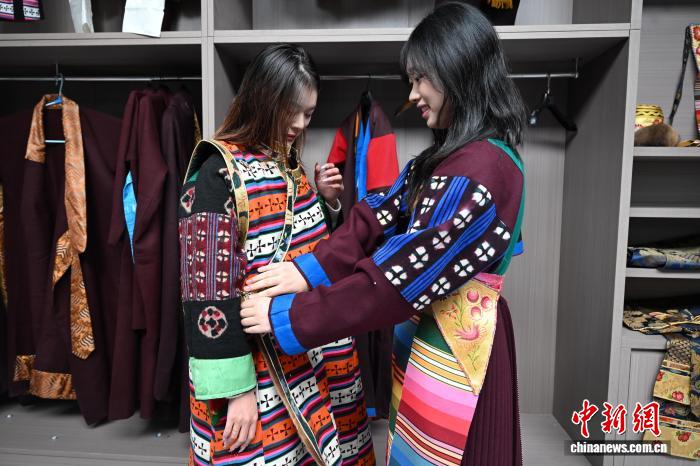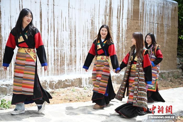 圖為游客穿上“瘋裝”打卡白藏房。中新社記者 張浪 攝