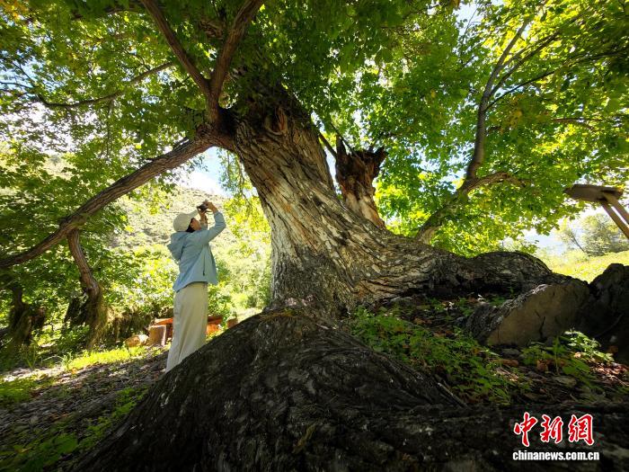 正值核桃收獲季,33歲的樹主澤仁扎西小心翼翼踩著木梯,將果實捧在手中,指尖不時輕撫樹干檢查健康狀況?!拔覐男【驮谶@樹下跑著長大,”他笑著回憶,兒時和伙伴圍著樹干捉迷藏,農(nóng)忙時節(jié),全村人會聚在樹蔭下分享午餐,“核桃果仁能做包子、奶餅,磨成粉拌進(jìn)酥油茶,是我們生活里離不開的味道。”這份與古樹共生的日常,正是當(dāng)?shù)卮迕瘛熬次纷匀弧⑷谌胱匀弧鄙鷳B(tài)智慧的縮影。