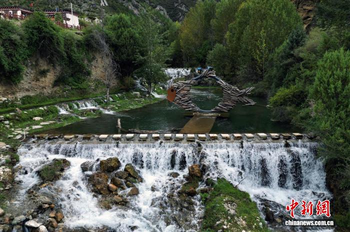 9月18日,四川省鄉(xiāng)城縣,航拍尼丁峽谷溪水形成的小瀑布。(無人機照片) 記者 王磊 攝