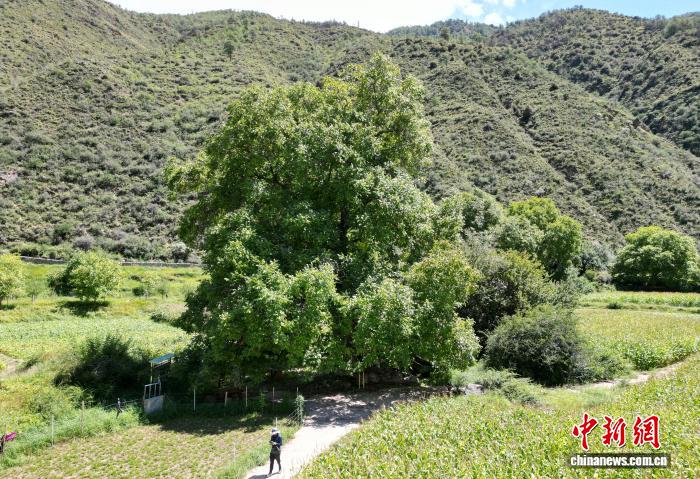 圖為千年“胡桃王”全貌。(無人機照片) 記者 張浪 攝