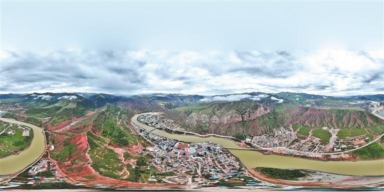 這里是黃河流經(jīng)的青海省果洛藏族自治州瑪沁縣拉加鎮(zhèn),地處黃河谷地,海拔較低,氣候宜人,被譽(yù)為“果洛小江南”。黃河蜿蜒穿過拉加鎮(zhèn),阿尼瑪卿山脈與紅土山共同守護(hù)著這片寧靜的土地。