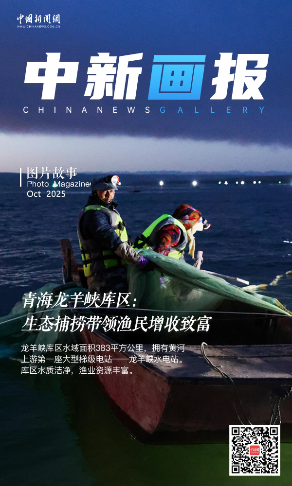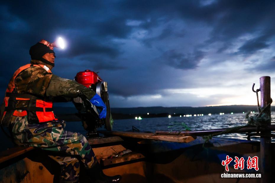 10月14日清晨,青海省海南藏族自治州的龍羊峽庫區(qū),漁民借用燈光誘捕肉質(zhì)細(xì)嫩的池沼公魚。龍羊峽庫區(qū)水域面積383平方公里,擁有黃河上游第一座大型梯級電站——龍羊峽水電站。庫區(qū)水質(zhì)潔凈,漁業(yè)資源豐富,每年8月20日至11月20日是池沼公魚捕撈期,僅這一項收入就能給每戶漁民家庭帶來近10萬元(人民幣)的收入。