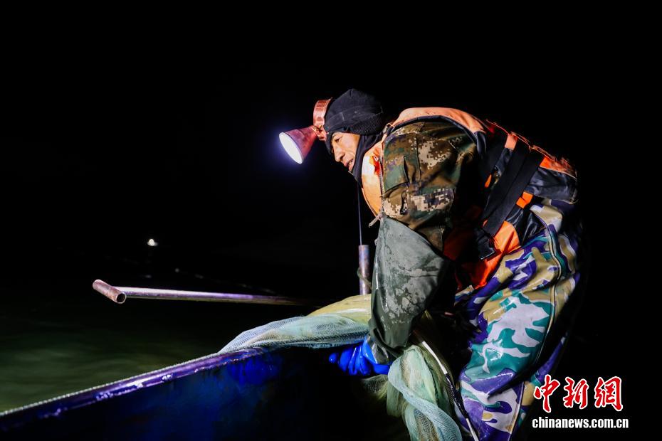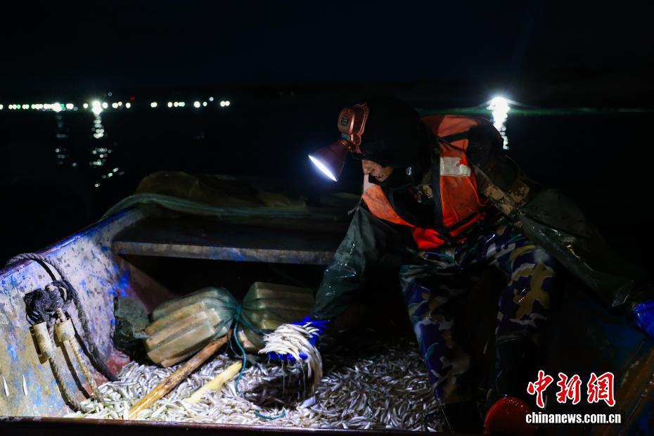 圖為漁民收網(wǎng)。中新社記者 薛蒂 攝
