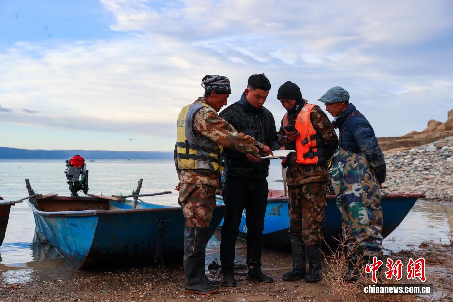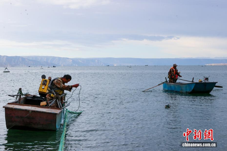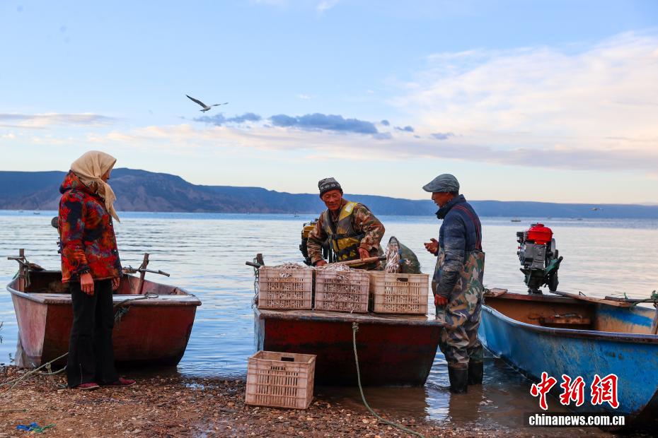 圖為漁民在湖面上起網(wǎng)捕魚。中新社記者 薛蒂 攝