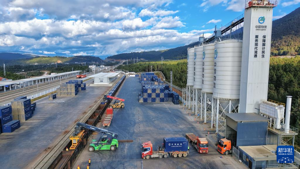 這是11月21日拍攝的云南迪慶藏族自治州小中甸站貨場(無人機照片)。新華社 楊紫軒 攝