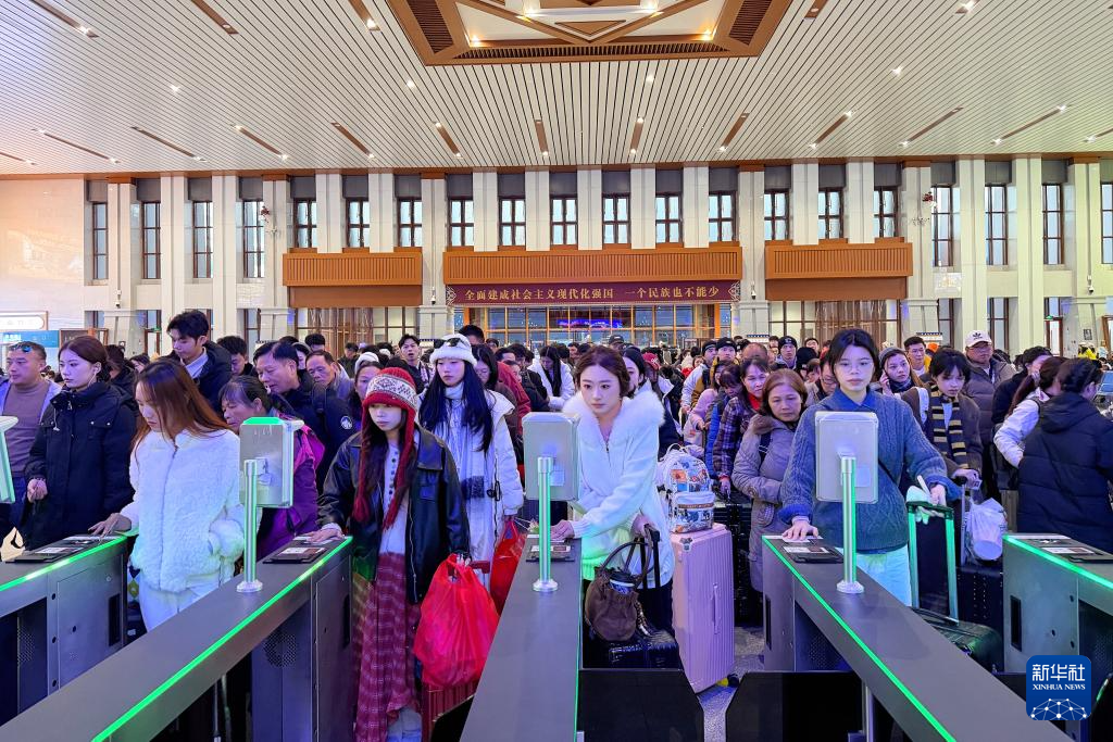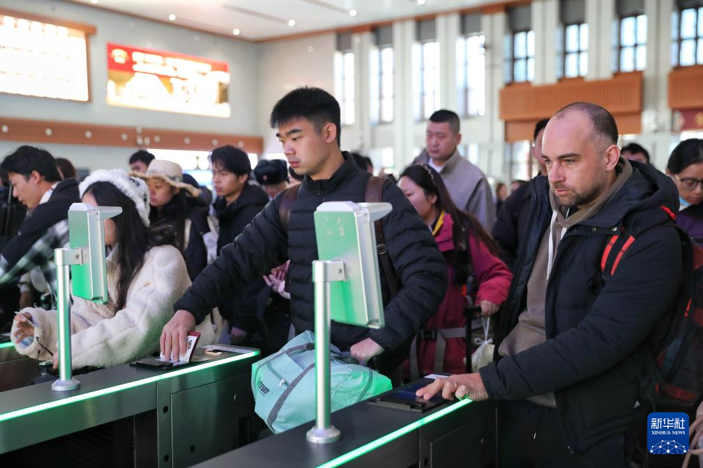 11月20日,旅客在云南香格里拉站通過檢票口乘車。新華社 楊紫軒 攝