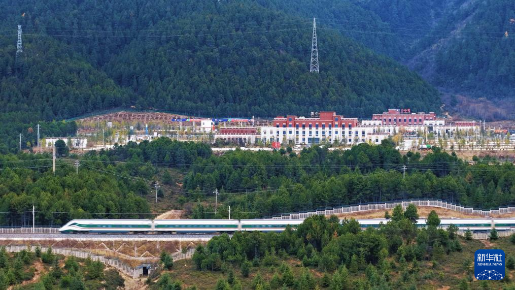 11月21日,一列動車組列車駛過云南迪慶藏族自治州小中甸站(無人機照片)。新華社 楊紫軒 攝