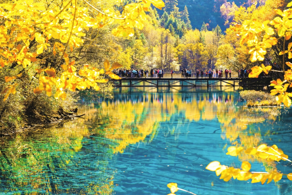 游客在九寨溝游覽。九寨溝景區(qū)管理局供圖
