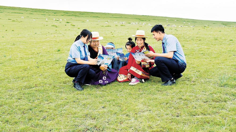 天??h檢察院檢察干警深入牧區(qū)宣傳“天祝白牦?!逼放票Wo法律知識。
