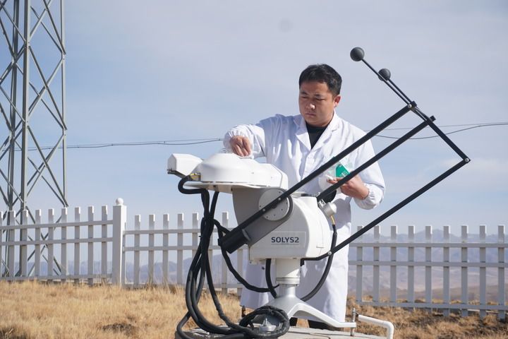 2026年1月13日,工作人員在瓦里關(guān)全球大氣本底站維護(hù)設(shè)備。新華社記者 王金金 攝