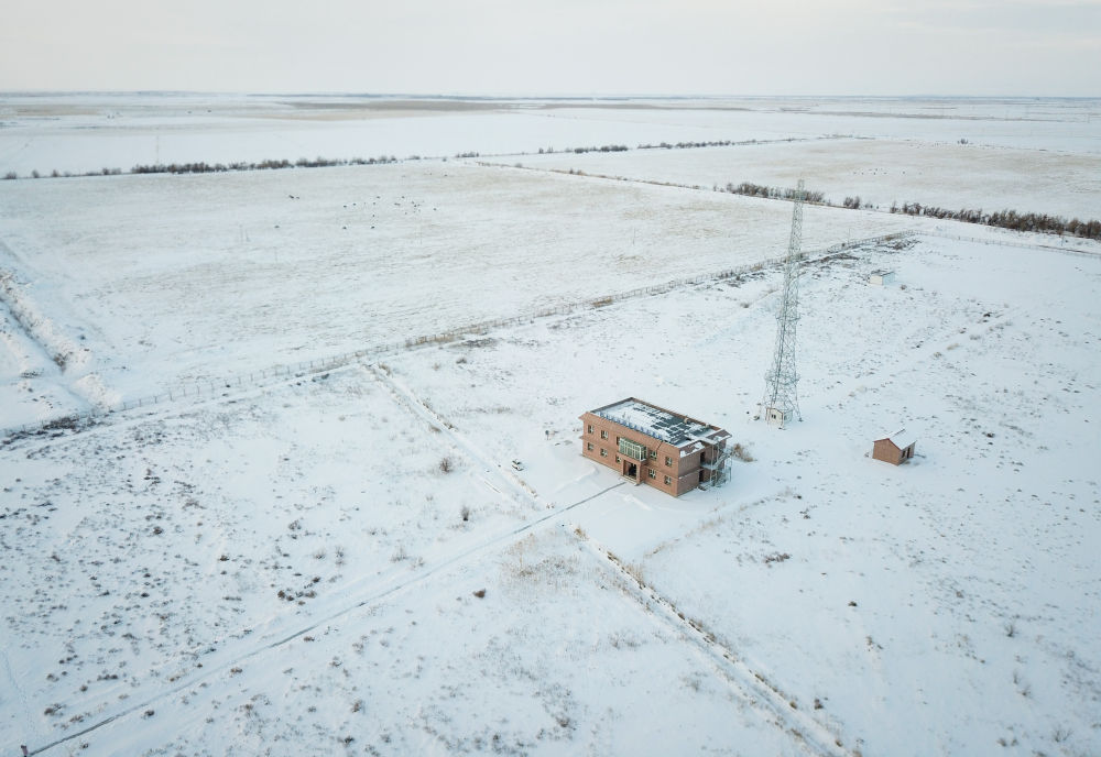這是位于新疆準(zhǔn)噶爾盆地北緣的阿克達(dá)拉國(guó)家大氣本底站(2023年1月8日攝,無(wú)人機(jī)照片)。新華社記者 李響 攝