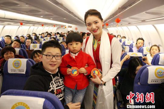 “這是我第二次乘坐西藏航空的春節(jié)主題航班,去年這個時候是在飛機上包餃子,他們每次春節(jié)的活動都讓我記憶深刻?!背俗鞑睾娇蘸桨嗟目迪壬闷鹪挋C在機艙里說。