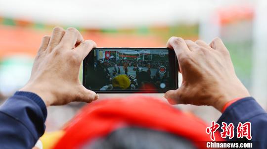 近年,西藏藏戲得到快速發(fā)展,展演活動越來越多。圖為8月30日,拉薩雪頓節(jié)藏戲展演活動上,一名外圍觀眾因無法觀看到表演,只好高舉手機(jī)進(jìn)行記錄。江飛波 攝