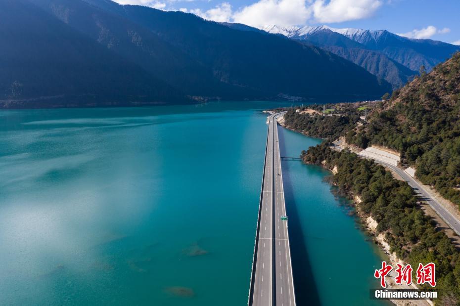 作為西藏目前“顏值最高”的高等級公路,拉林高等級公路在林芝市境內(nèi)的多布特大橋路段又被譽為西藏“最美水上公路”,公路橫跨湛藍(lán)的水面,顏值爆表。 何蓬磊 攝