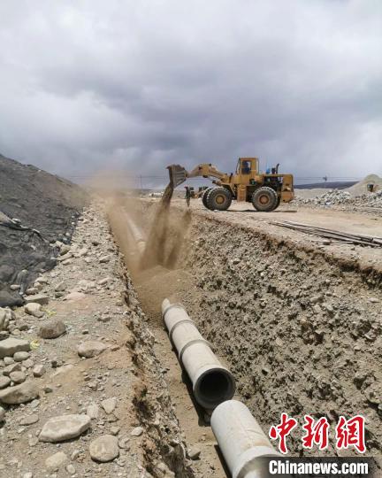 挖掘機(jī)開挖著溝渠,工人們熱火朝天在施工。10日,地處西藏阿里地區(qū)巴嘎鄉(xiāng)(塔爾欽)國際旅游小鎮(zhèn)正在施工建設(shè)。