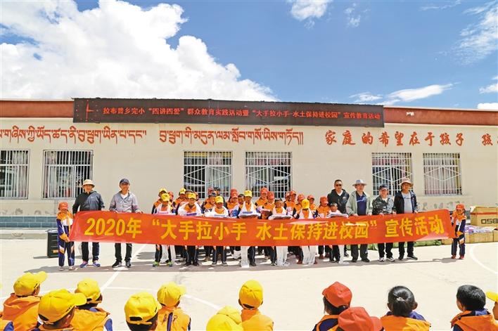 圖為西藏自治區(qū)水土保持局組織開展2020年“大手拉小手 水土保持進校園”宣傳活動現(xiàn)場。