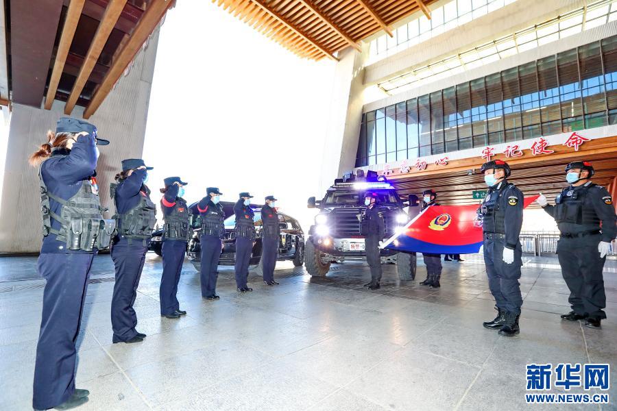 1月10日, 拉薩火車站派出所“女子格?;ā本M佇立在警旗前宣誓。
