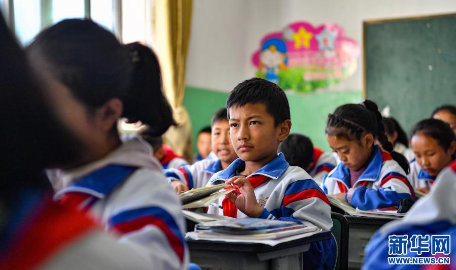 西藏昌都市實驗小學(xué)六年級四班的學(xué)生在上藏語課(2020年10月5日攝)。新華社記者 晉美多吉 攝