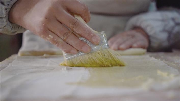 尼珍店內(nèi)共有7種類型的卡塞與布魯,她每天要工作到晚上9點半?!?月初,我們就開始制作售賣卡塞,今年生意還不錯,店員大部分是放假的大學(xué)生,每年這個時候,他們都會來店里工作。”尼珍笑道。