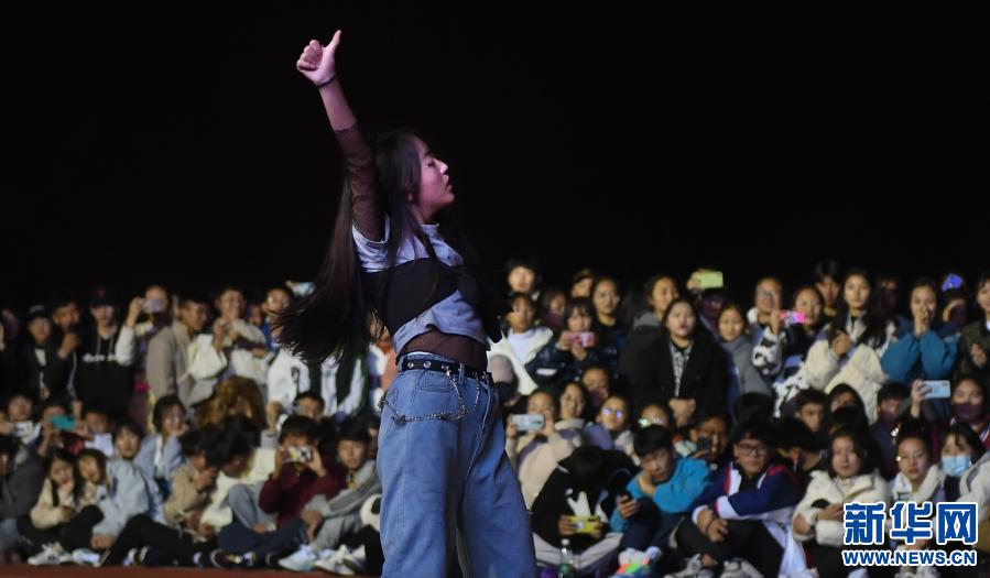 藏歷新年的活動進入下半場,街舞串燒、民族風舞蹈等節(jié)目在操場主席臺前上演。一群高一學生排成兩列,準備上場。